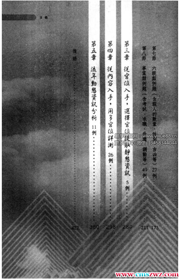 本书收录204 个例题 每个例题,先讲述星情和星曜组合的思路,再讲述推理和判断的结果。 每个例题,既有预测师的分析内容,也有求测者的真实回馈内容。 近一个世纪以来,紫微斗数这门易学处于兴起与繁荣之中,研究者都在忙于梳理理论,为什么这么说呢?这一点能从市面上的紫微斗数书籍的内容看出来:较多的紫微斗数书籍是只有理论而没有例题,这让很多的初学者在入门和实践时大为艰难,令人欣喜的是,这种状况正在改观,不过,还需要同仁更多的努力才行,在这个心境之下,我决定写一本类似于习题集的书稿,让读者能饱餐一顿,能从中感悟紫微斗数预测的神奇和奥妙。