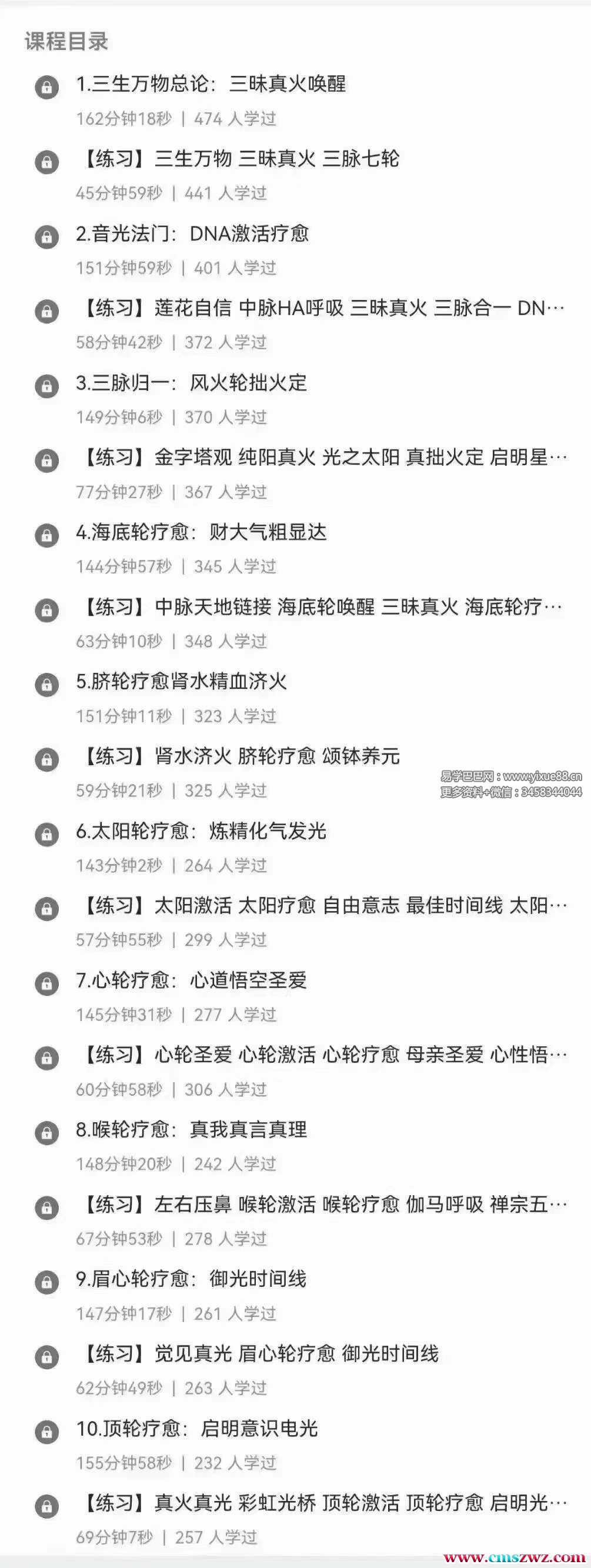 13.7心轮疗愈:心道悟空圣爱14.8.喉轮疗愈:真我真言真理15.【练习】左右压鼻 喉轮激活 喉轮疗愈伽马呼吸禅宗五步真我真言