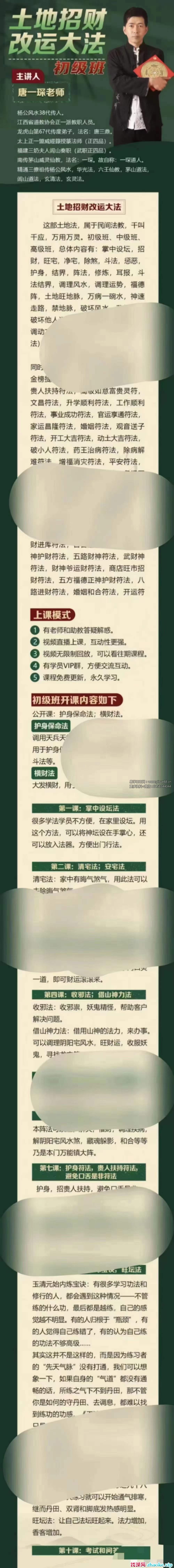 课程编号:Y2404-19楚恒易学唐一琛老师(土地招财法)初到高全套课程备注:高级班只有2集!介意者慎拍!唐一琛土地法初中高全套视频课程初级部分:掌中设坛法.mp4清宅法、安宅法.mp4除煞法、土地招