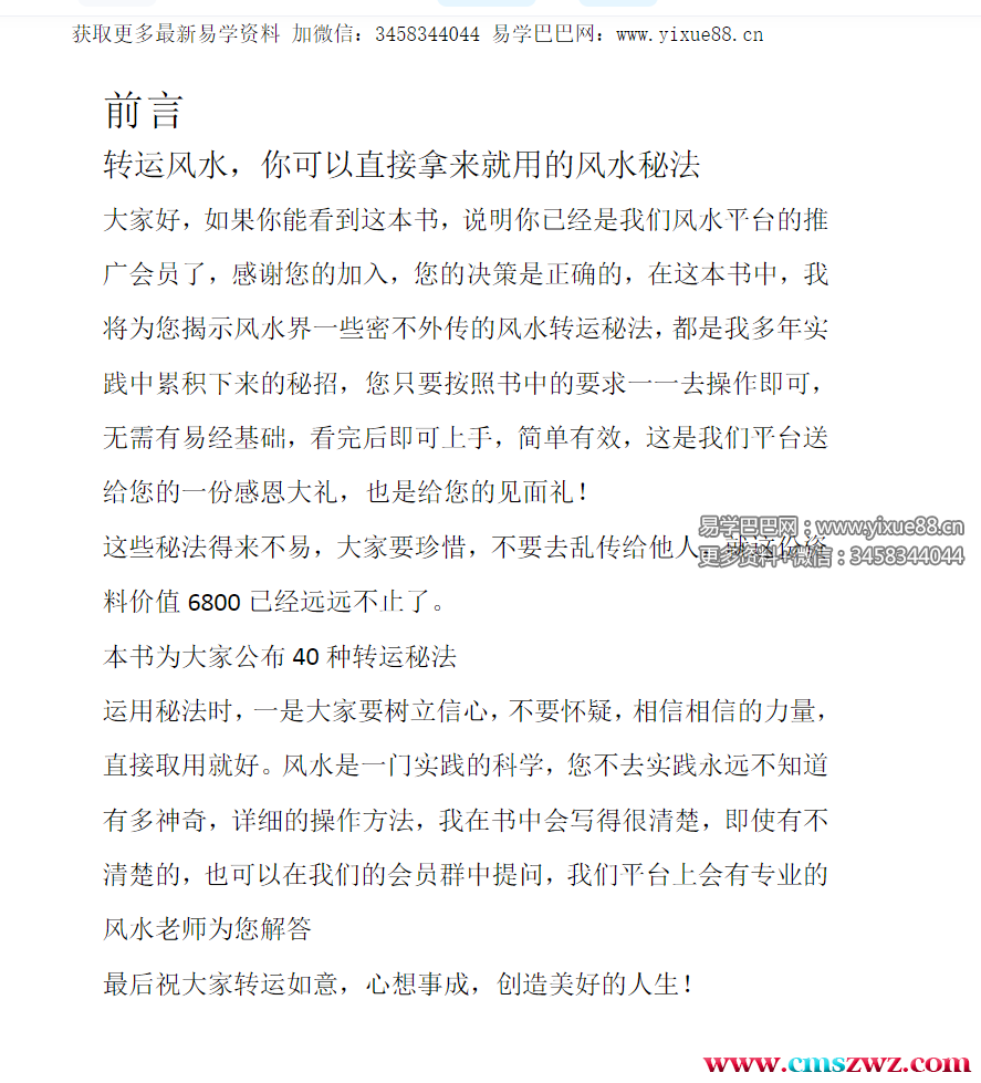 秘传转运风水 内部课程教材(催财改运布局秘法)39页