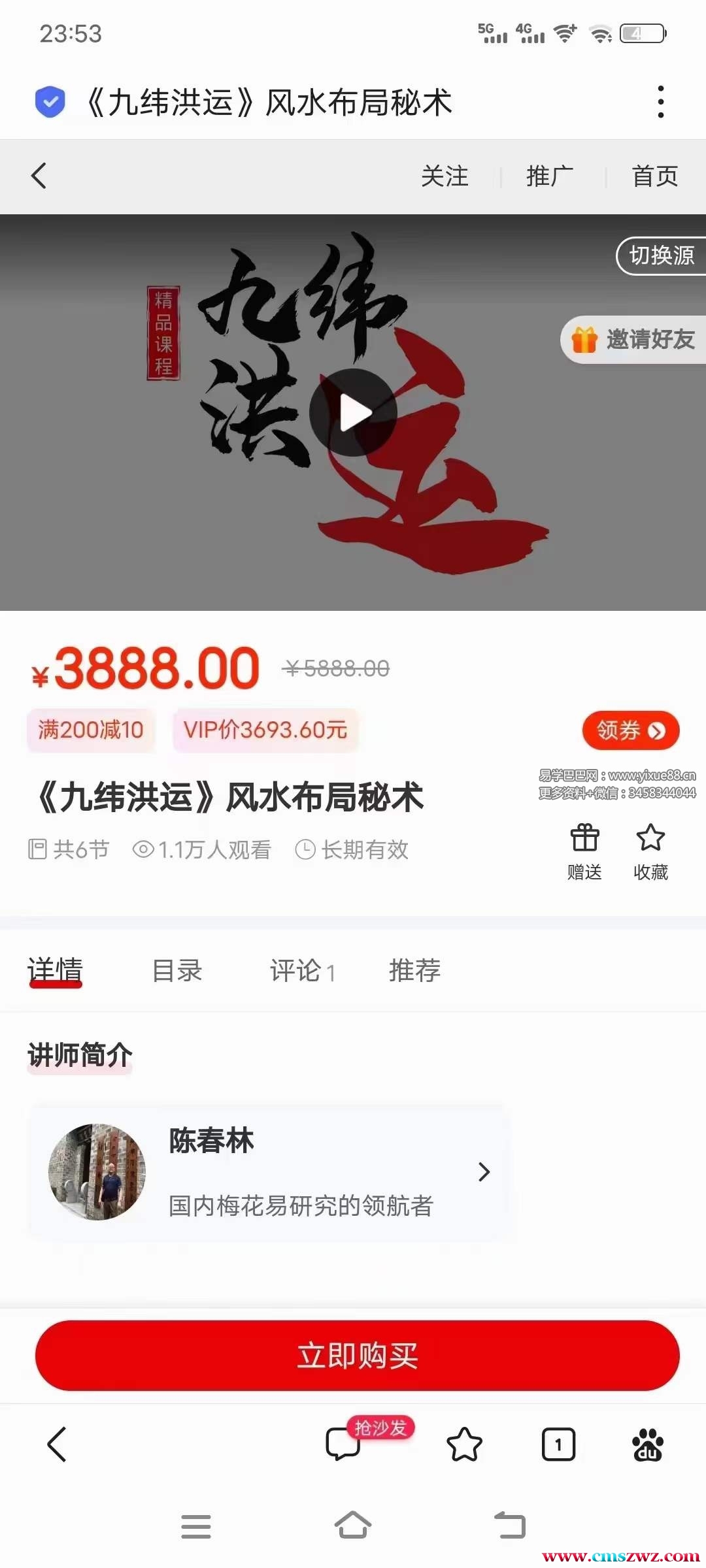 陈春林老师《九纬洪运》风水布局秘术,原价3888,目录如下: