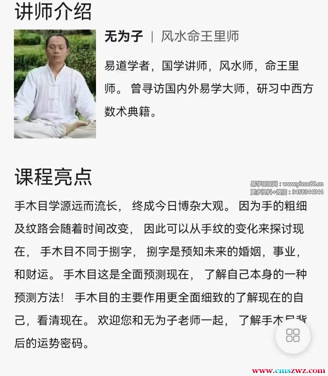 【无为子掌纹学】掌纹手木目的运势密码 视频22集,掌指纹三要素均有讲述,不错的掌纹课程。