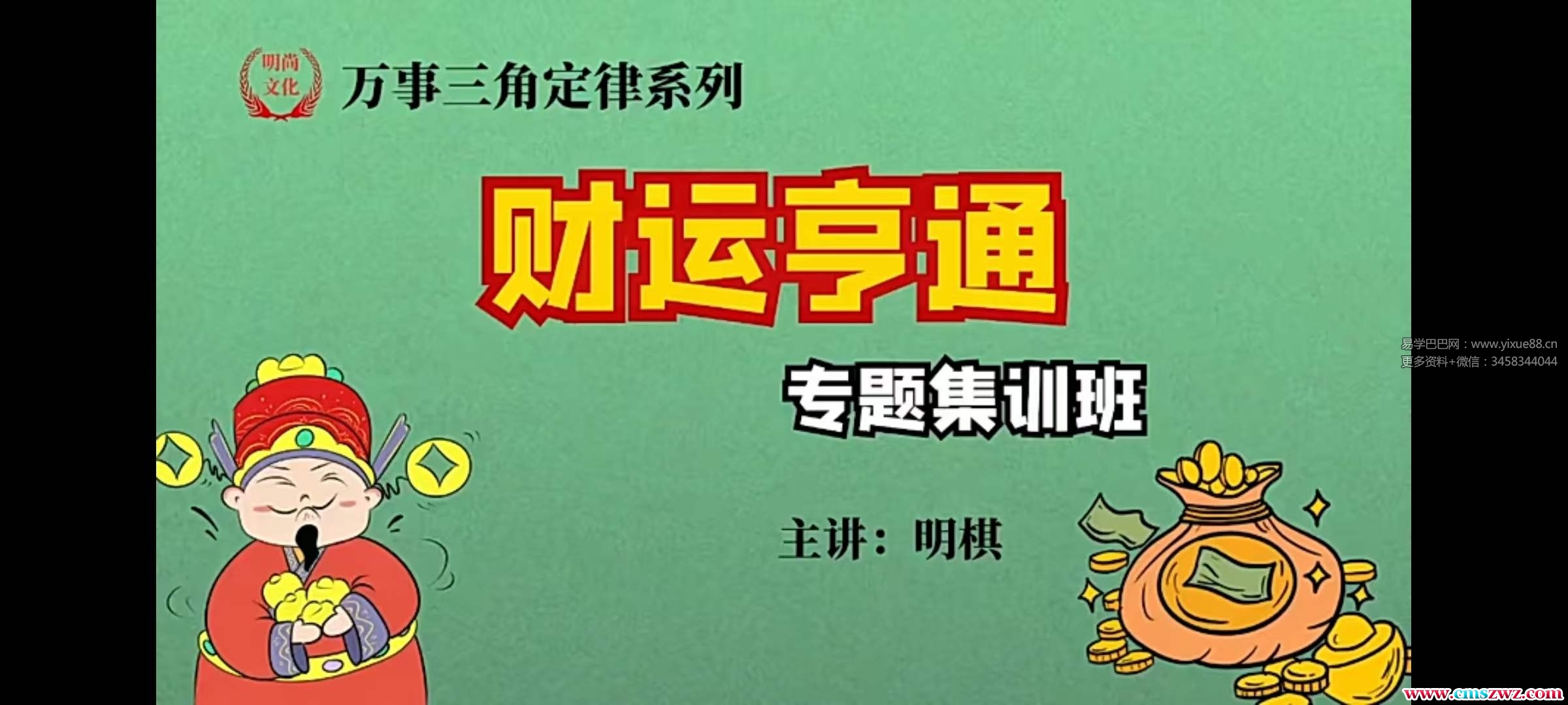 明棋《万事三角定律财运集训班》17集视频,只针对财运进行讲解和调节。