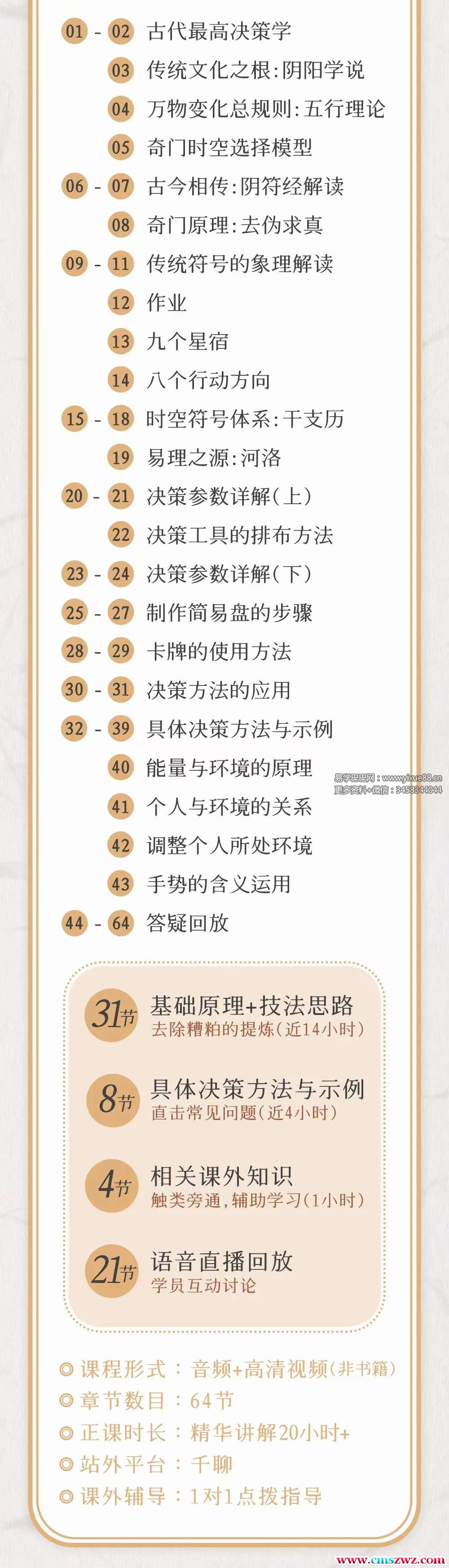 课程编号:Y2405-13道先生的奇妙时空门传统决策学30集视频+音频所谓:“奇门奇门,难入其门。”在经过几千年的流传和演变,此类书籍中鱼目混珠,精华被掩盖扭曲,篡改,这些都是自学者遇到的障碍。传统决