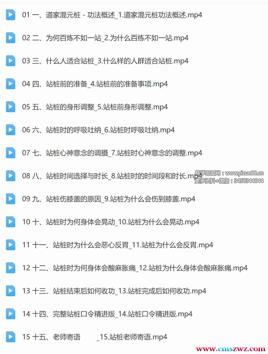 【道家混元桩】全15讲视频课 武当李资通道长 主讲