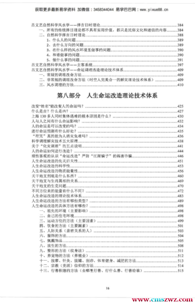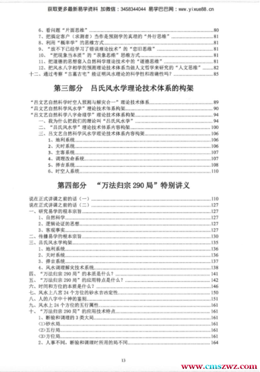 《“吕文艺自然科学风水学与人文社科传统风水学”比较学》2021版,大16K,588页,和之前的所有风水资料相比,增加了50%的新内容,具体目录如下(该讲义是吕文艺老师2020年最全最新的讲课内容整理本):