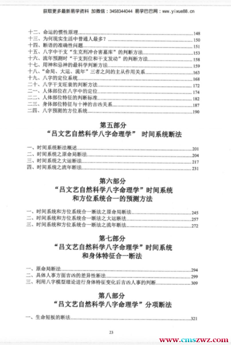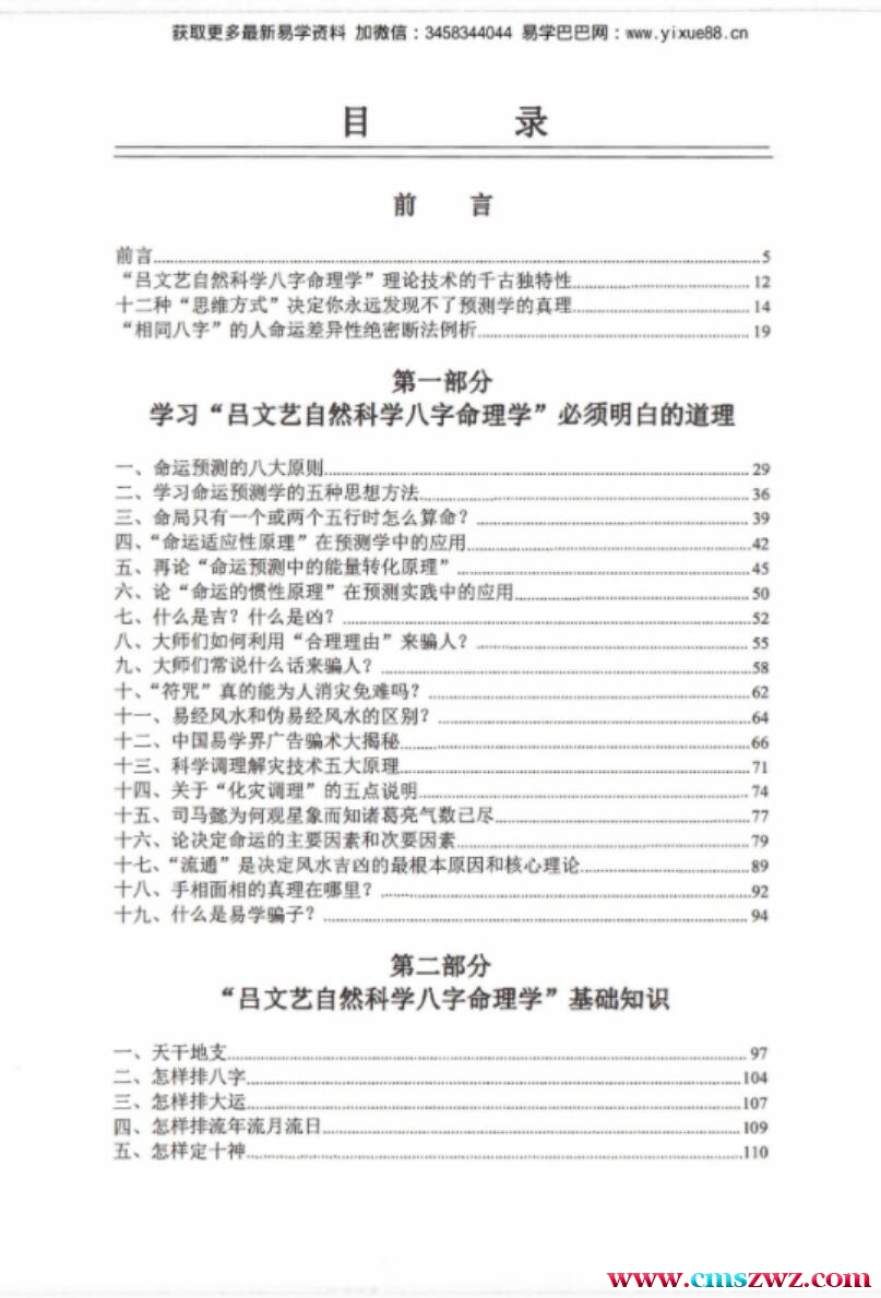 课程编号:LWY004吕文艺自然科学八字命理学》2021版,大16K,642页,和之前的所有八字资料相比,增加了30%的新理论和100%不相同的讲课现场预测实例详细分析,具体目录如下(该讲义是吕文艺老
