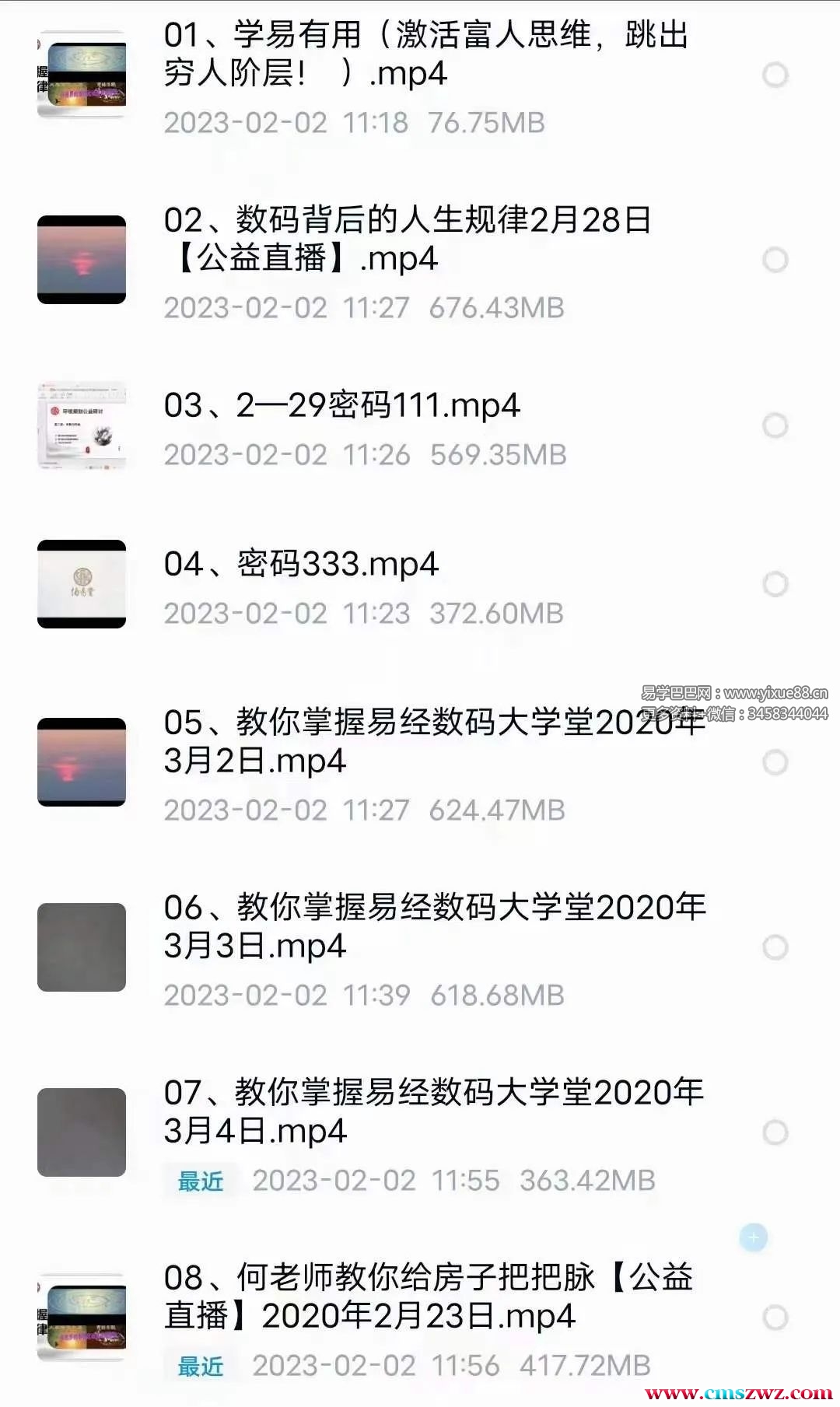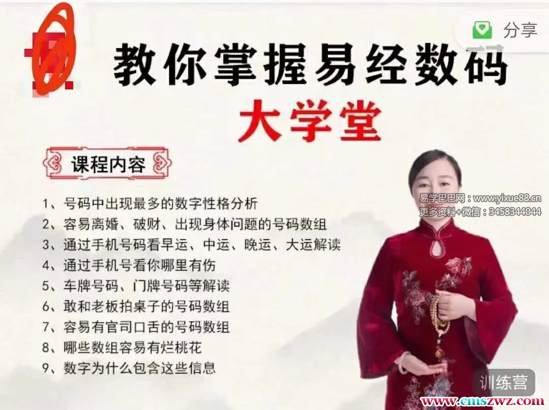 课程编号:Y2405-56何曼宁——数码背后的人生规律大学堂第一期课程内容:1、号码中出现最多的数字性格分析2、容易离婚、破财、出现身体问题的号码数组3、通过手机号码看早运、中运、晚运、大运解读4、通