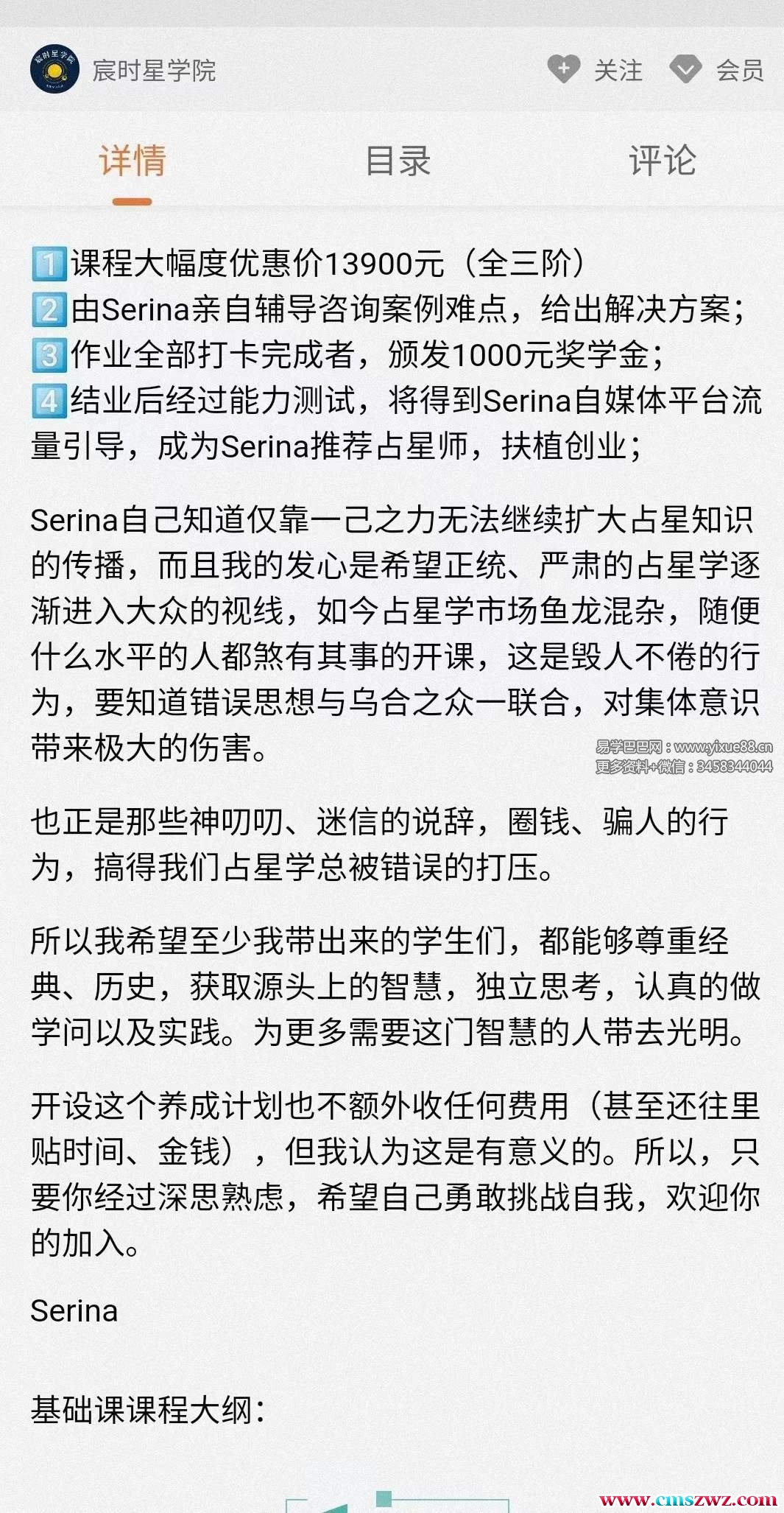 (Serina占星 热销课)宸时星学院 Serina老师 职业星占培计训划 初中高阶 全阶