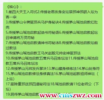 13.传授民间茅山天师藏身斗邪决14.传授民间雪山水(简易)15.传授民间治咽喉法