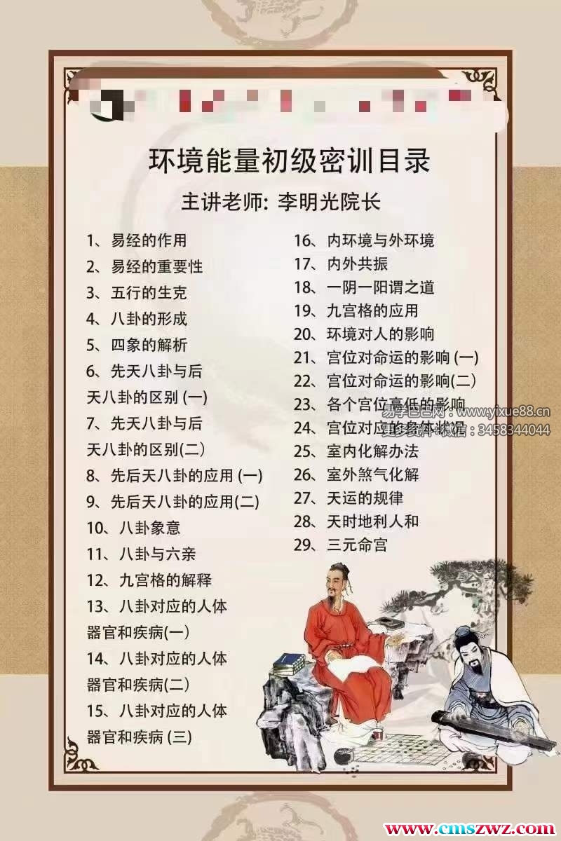 李明光【环境能量阳宅班】教学视频29集,目录看第三张图: