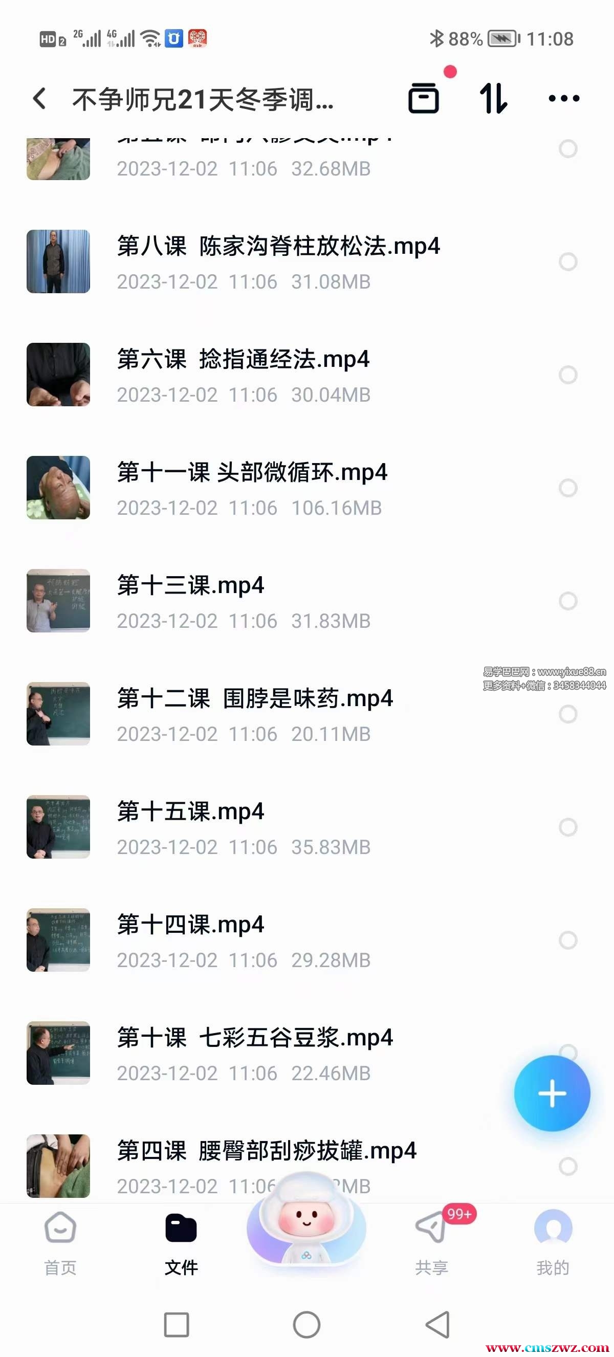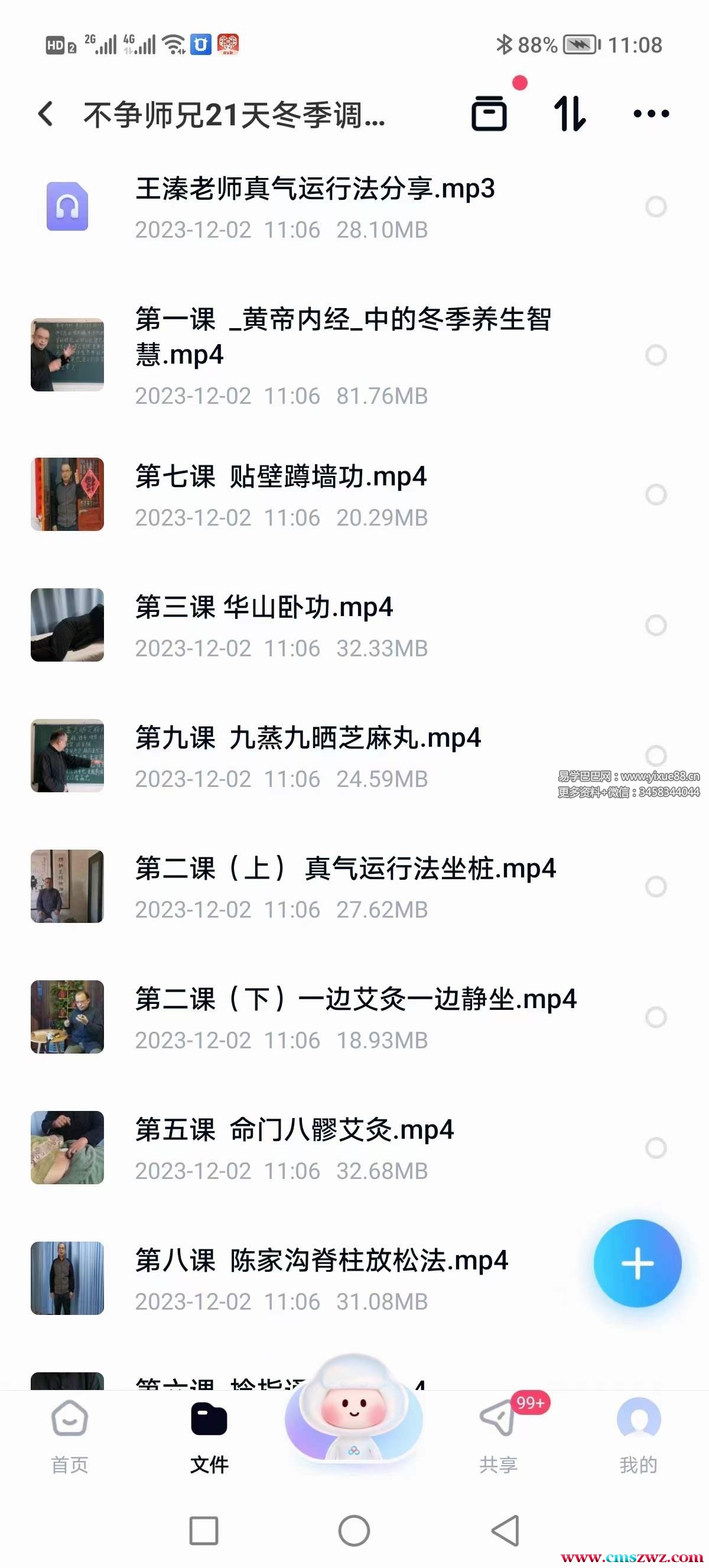 课程编号:Y2407-98不争师兄:2023年调神养生养肾训练营课程目录:第八课 陈家沟脊柱放松法.mp4第二课(上)真气运行法坐桩.mp4第二课(下)一边艾灸一边静坐.mp4第九课 九蒸九晒芝麻丸.