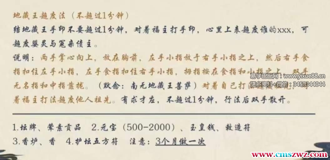 课程目录:Y2408-59《道家秘法》视频程课共10集,内如容下1、第一讲 换袍快改速运法2、第二讲 日进金斗环境改造3、第三讲 祛业消障阴债用万法4、第四讲 地王藏超度法
