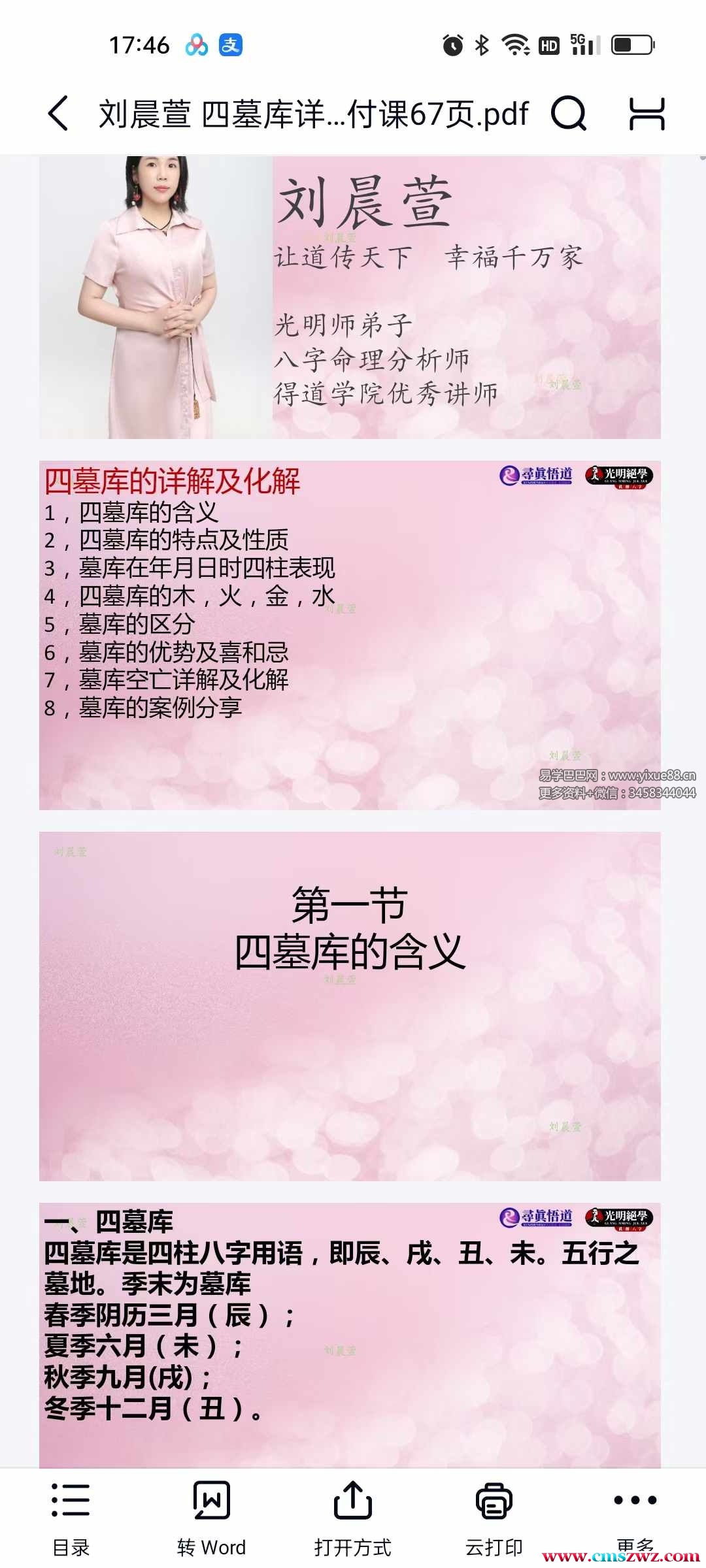 课程编号:Y2409-91夏光明弟子 刘晨萱《四墓库详解及化解交付课》67页