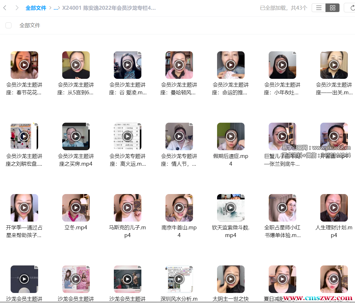 课程编号:X24001【占星课程】陈安逸伊伊2022占星在线会员沙龙专栏2023-未来20年最重要的一年.mp42023-未来20年最重要的一年 Al-中文.pdf从人生地图看暴力倾向及化解方法.mp