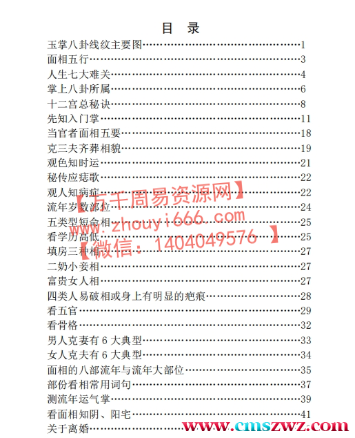 内容涵盖:手面相看人生七大难关,如何掌上八卦所属,十二宫总秘诀看相,先知入门掌等,.当官者面相五要克三夫齐葬相貌观人知病症流年岁数部位五类型短命相·看学历高低四类人易破相或身上有明显的疤痕·…看五官男人克妻有6大典型女人克夫有6大典型面相的八部流年与流年大部位部份看相常用词句测流年运气掌看面相知阴、阳宅