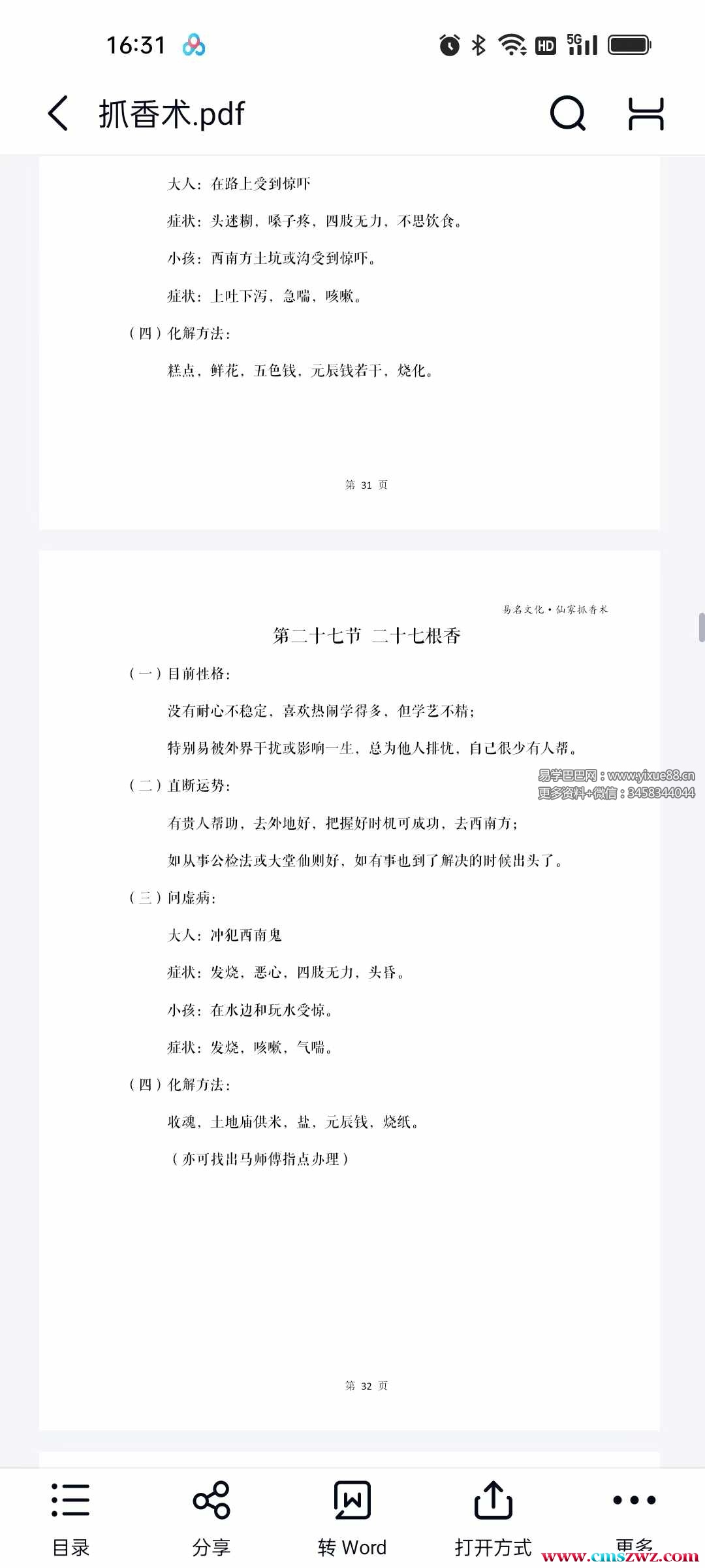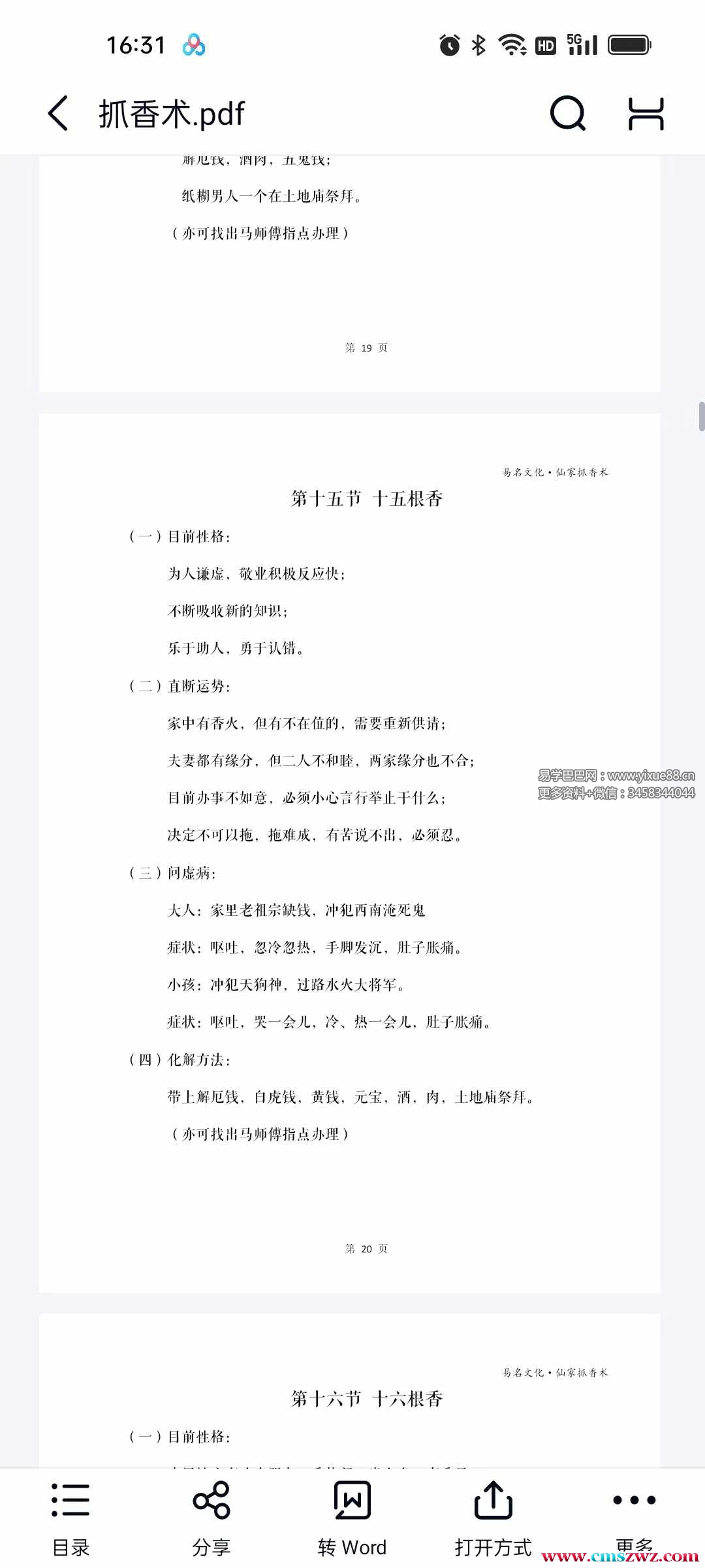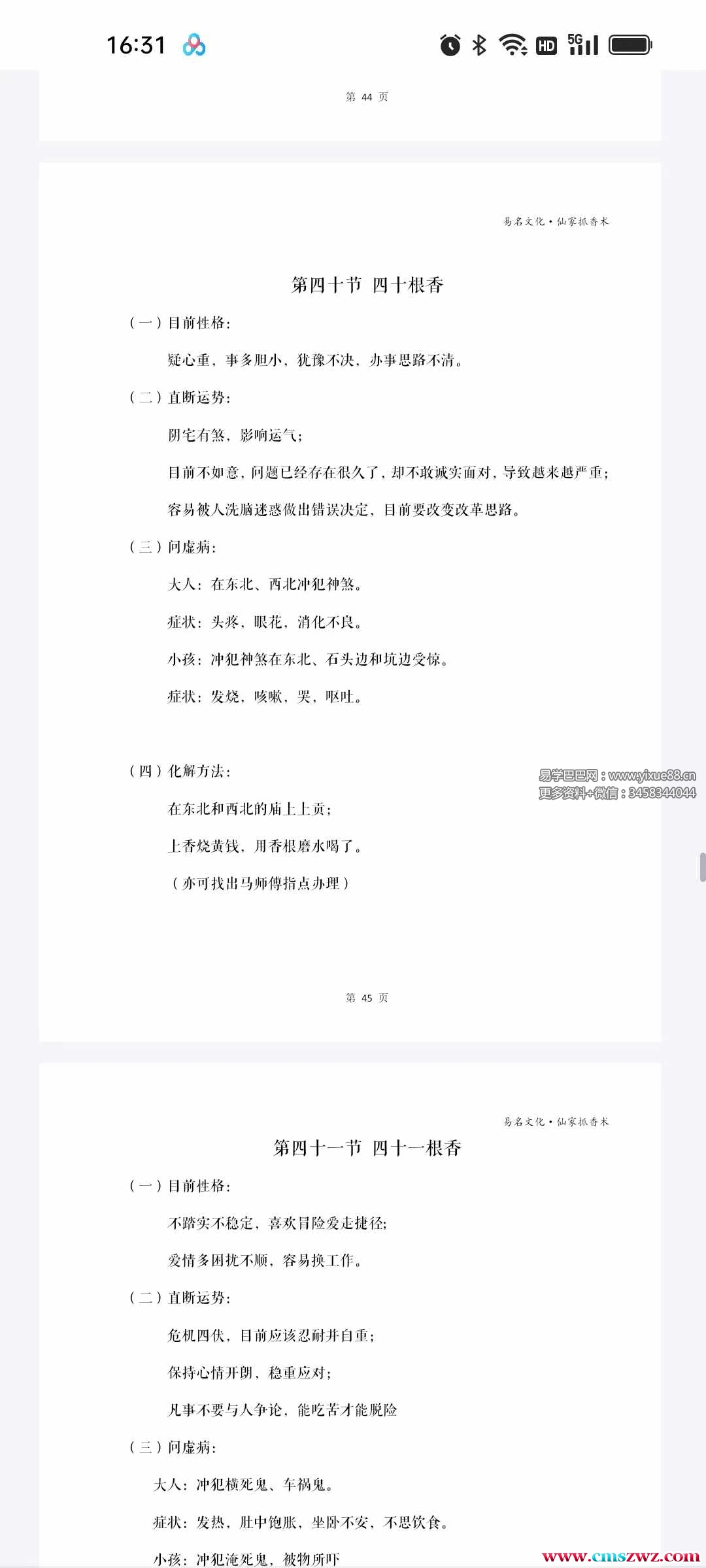 易铭文化 仙家六十四根香抓香术 打印版+手写版