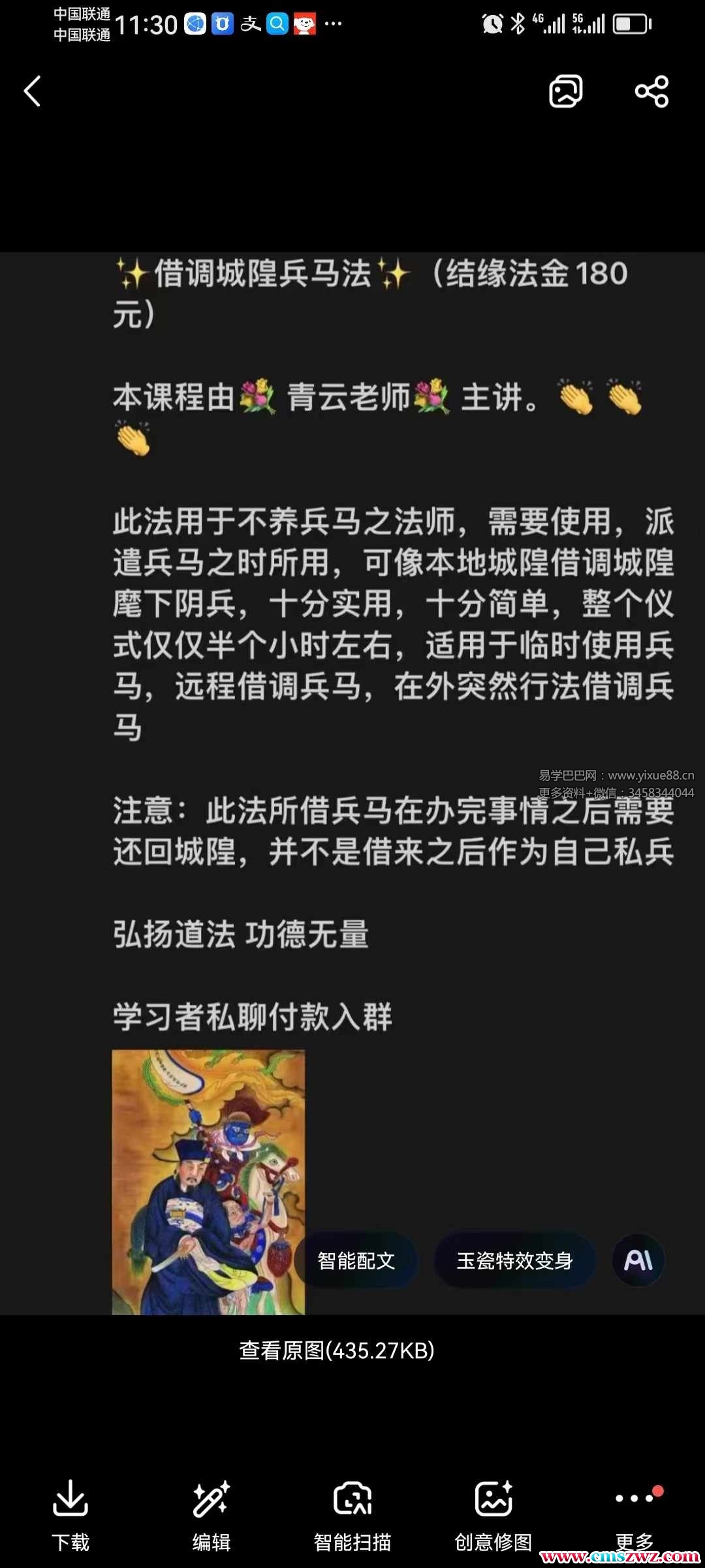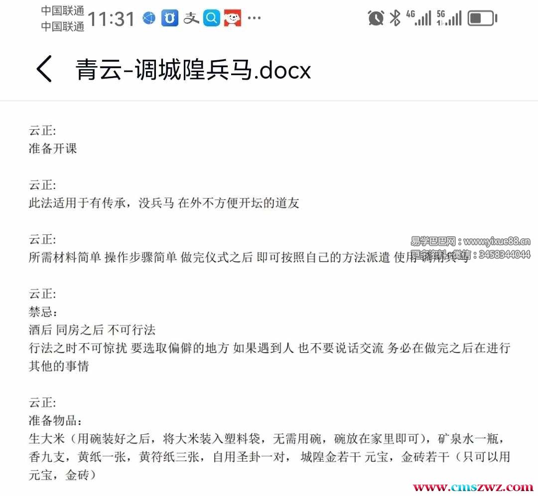 课程编号:Y2410-31青云 借调城 隍兵马法本课程由青云师老主讲。此法用于养不兵马之法师,需要使用,派遣兵马之所时用,可像本地城隍调借城隍下麾阴兵,十实分用,十分简单,整个