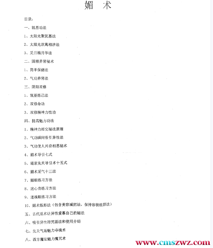 资料介绍媚术包含两层个面,一是容不貌衰,二是自己貌容俊美,精神高雅魅等力,对异性的引吸力资料目录
