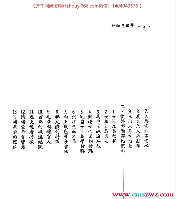 资料目录乾部 神秘相人学坤部 神秘相字学震部 神秘住宅风水学巽部 神秘五官观察学坎部 神秘色相学离部 八仙解神秘数理诗兑部 神秘三才聚财学资料预览