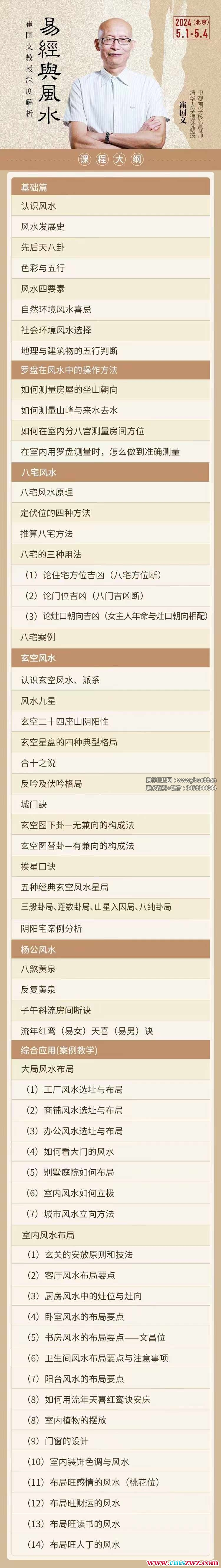 🇨🇳🇨🇳崔国文教授《深度解易析经与风水2024年5月1号-4号4天课程》,课程大如纲下: