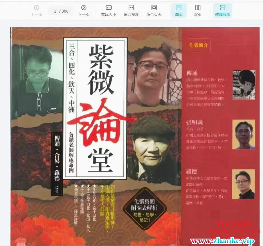 资料介绍资料目录《紫微讲堂:宫垣、四化篇(修订版)》 354页;《紫微师堂:命格、四化篇附真实命例解析》 416页;《紫微学堂:星曜、四化篇》 416页;《紫微论堂》306页资料预览