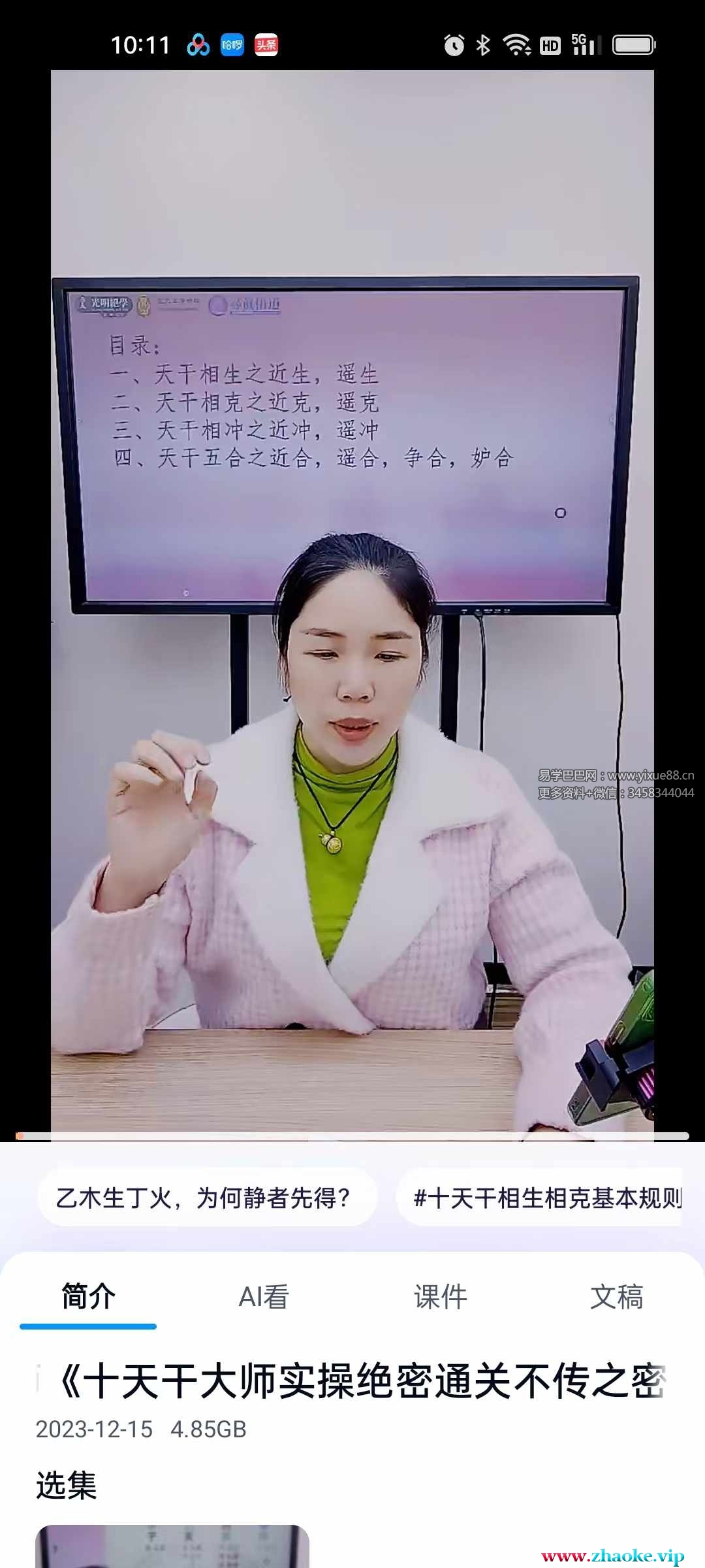 夏光明弟子 刘晨萱《十天干大师实操绝密通关不传之密》长视频1集时长2小时45分