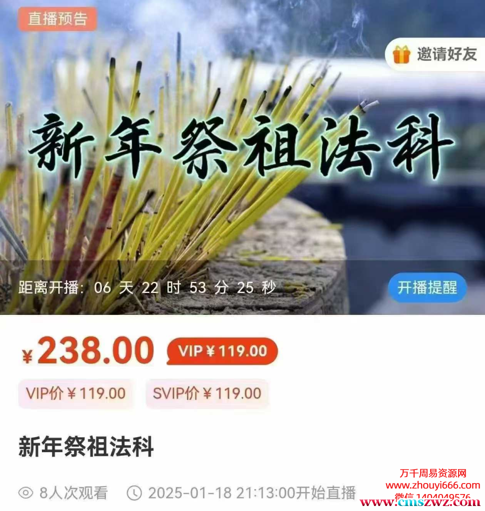 课程介绍: 本法为祭祀方法,用此法可如法祭祀祖先家神 ,令其享受供奉,令祭品如法,可以令祖先家神满意,在新的一年中更加庇佑你和家人,助你破除阻碍,在来年丁财两旺,一切如愿 。本法不 可远程使用,有无神坛均可,仅限春节期间使用,其余时间不可使用,本法方便快捷,简单易用,适用于新年祈福祭祀
