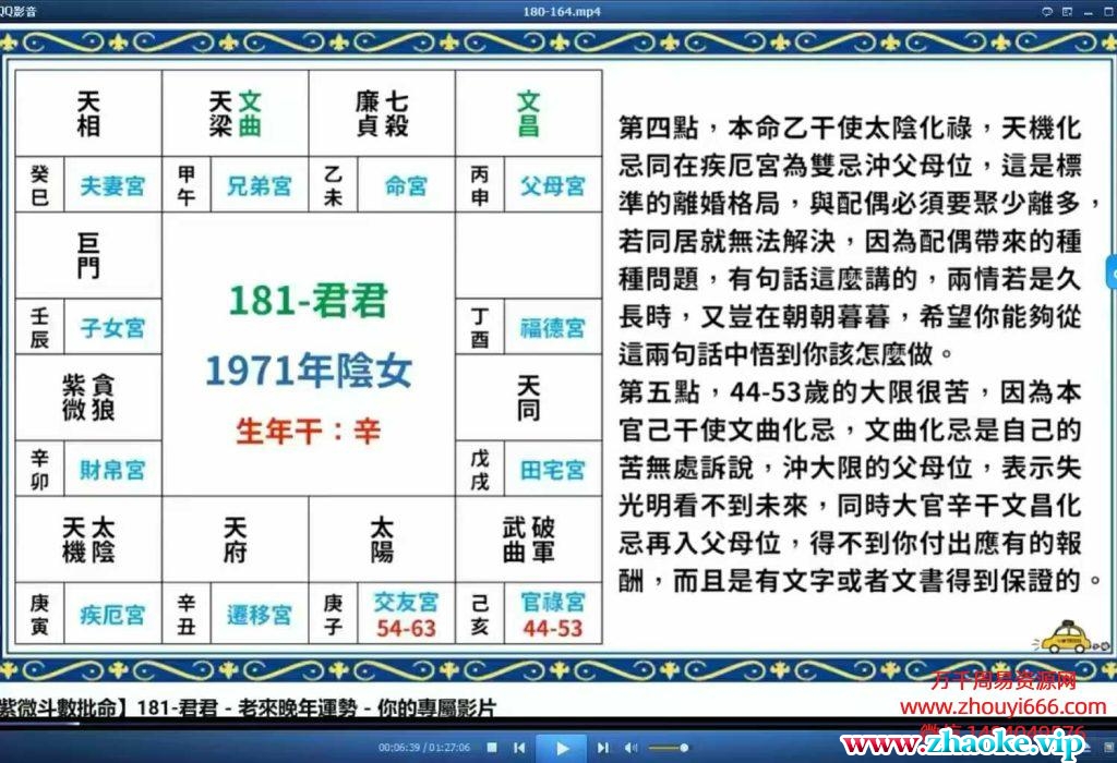 显君一支花紫微斗数2024年2000案例讲解视频129集