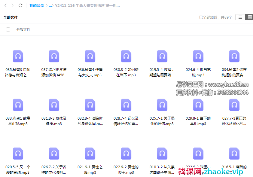 课程编号:Y2411-116生命大蜕变训练营 第一期 38节音频