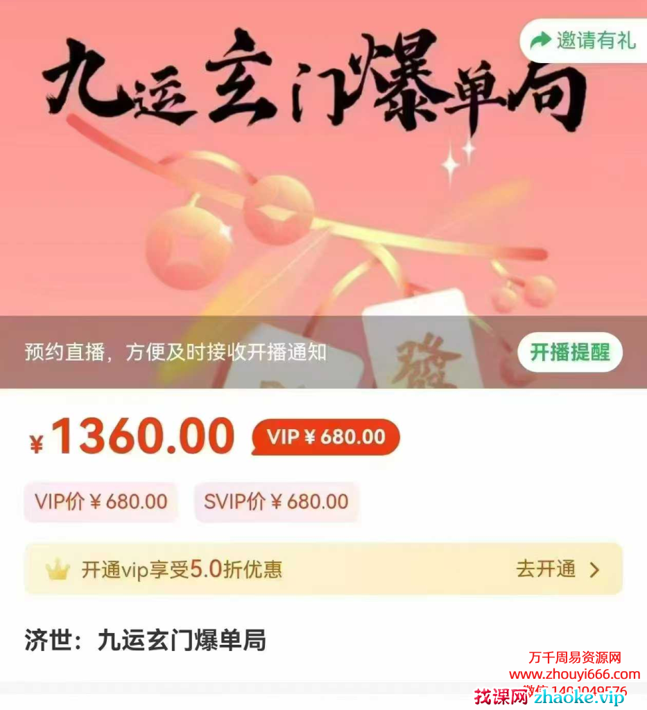 1月22新课九运玄门爆单局,济世道人主讲,1节音频,介意勿拍内拍容如下九运玄门爆单局,不管你有无法坛,专业还是业余,有无工作室……都会让你业务暴增!专为离火九运业务爆单量身打造的阵局!布阵即起效,不需动墙动土,所需物品便宜容易买到,布阵简单易摆,对道行法力要求不高!适合人群:从事玄学业务的人想业务爆单的人跟开单做单有关的人做业务拿业绩的人业务量低迷的人一切有强烈求财欲望并付诸行动的人