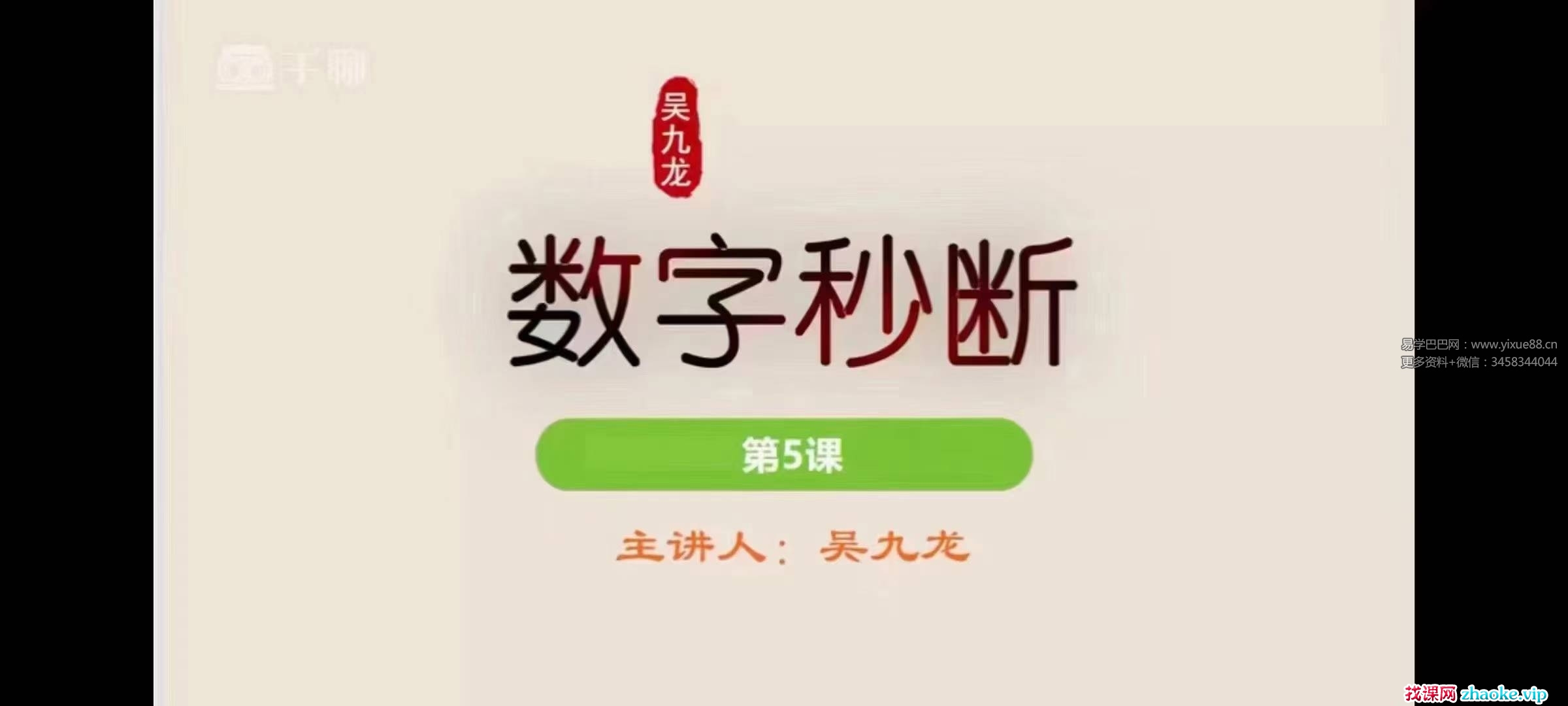 最新吴九龙老师《号码秒断》视频课程共21集,号码断秒属于金诀口体系,4个字数就可以断吉凶,且确准率非常高
