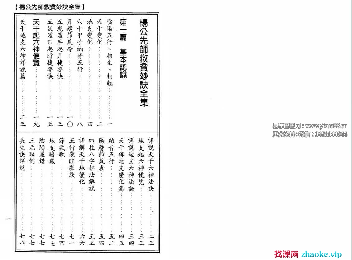 课程编号:Y2502-143杨太雄《杨公先师救贫妙诀全集》390页目录:基本认识阴阳五行天干变化地支变化月建节气冷六十甲子纳音五行天干起六神便览详说天干六神法诀纳音五行阳历节气表详解天干地变化节气歌地