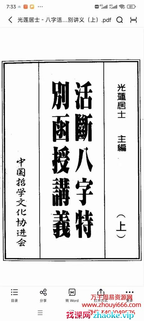 光莲居士活断八字特别函授讲义,PDF电子文档上下册2本