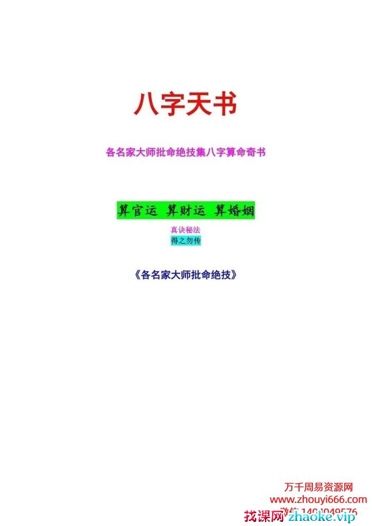 八字天书又名大师批命绝技集精华, 八字算命奇书
