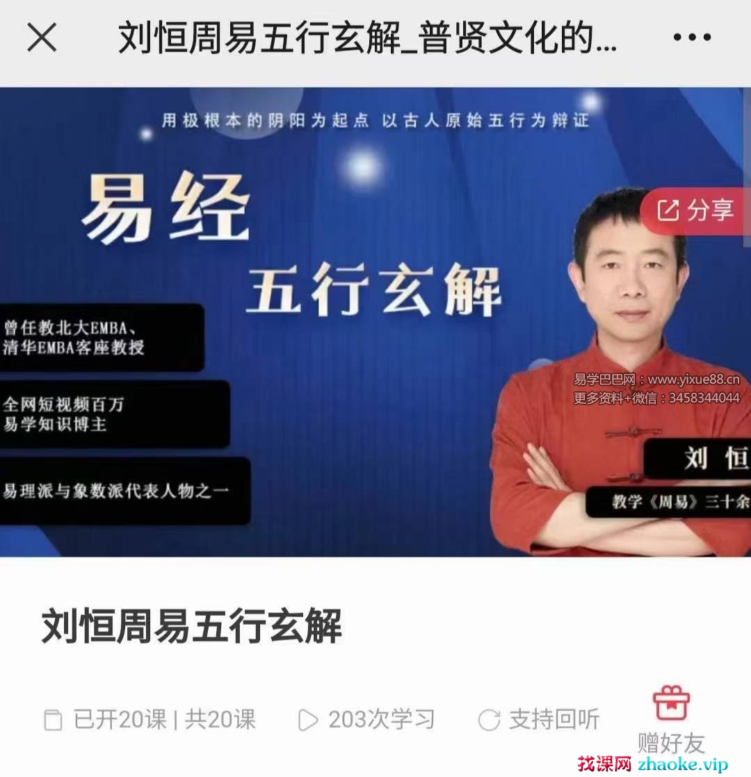 课程编号:Y2503-32最新:刘恒《周易五玄行解》20集课总程课时数20节第一节:《易经》阴阳起源,三才(天人地)理念其及万物类象详解·阴的阳表现形式,阴阳念概的诠释,地和的也