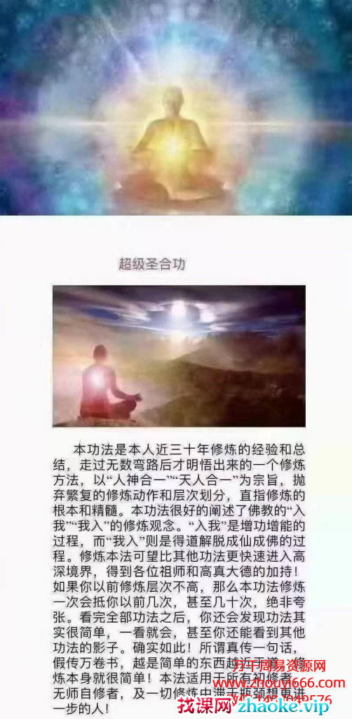 (本功法是老师近三十年修练的经验和总结,走过无数弯路后才明悟出来的一个修炼方法,很好的阐述了佛家的“入我,我入”的修练观念!入我是增功增能的过程,我入则是成佛的过功。购买了本功法后,你会发现功法其很简单,一看就会。确实如此!所谓真传一句话,价值万卷书。越是简单的东西越接近于道,修炼本身就很简单!此法适用于所有初修者,及修上想更进一步的人!如果你以前修炼的层次不高,那么本功修炼一次抵你以前几次,甚至几十次,决非夸张!如果你以前练功静不下来,练了跟没练一样,那么本功可让你速入静,甚至进入定境。有些修炼基础的,甚至第一次修练即能入定!对法术符咒比较感兴趣但自身功力不够,或无师自习者可练此功,在功态下书符,效果会远胜以前,也可加持法物或给物品开光,都比比较灵验….