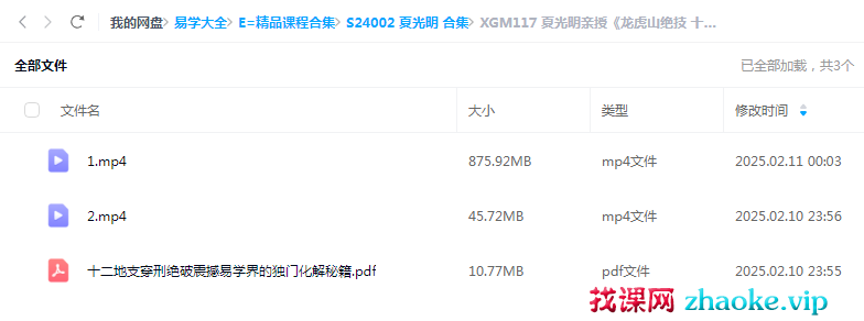 课程编号:XGM117夏光明亲授《龙虎山绝技 十二地支穿刑绝破震撼易学界的独门化解之秘》2集视频+文档