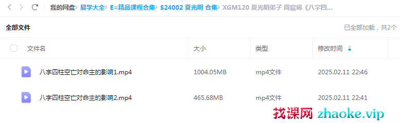 课程编号:XGM120夏光明弟子 周宸晞《八字四柱空亡对命主的影响》视频2集