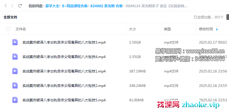 课程编号:XGM124夏光明弟子 德芸《实战案例破译八字出轨自杀父母离异的八大秘技》5集
