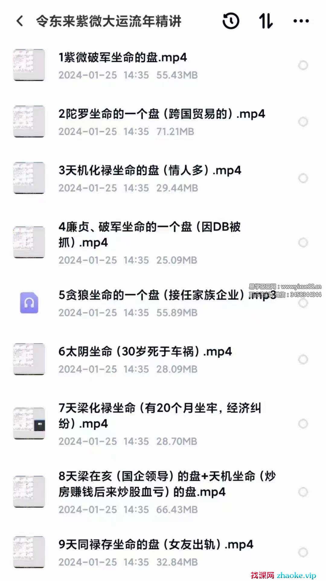 课程编号:Y2503-120令东来紫大微运流年精讲9个视频1紫微破军坐的命盘mp42陀罗坐命一的个盘(跨国易贸的).mp43天化机禄坐命的盘(情人多).mp44廉贞、破军坐命一的