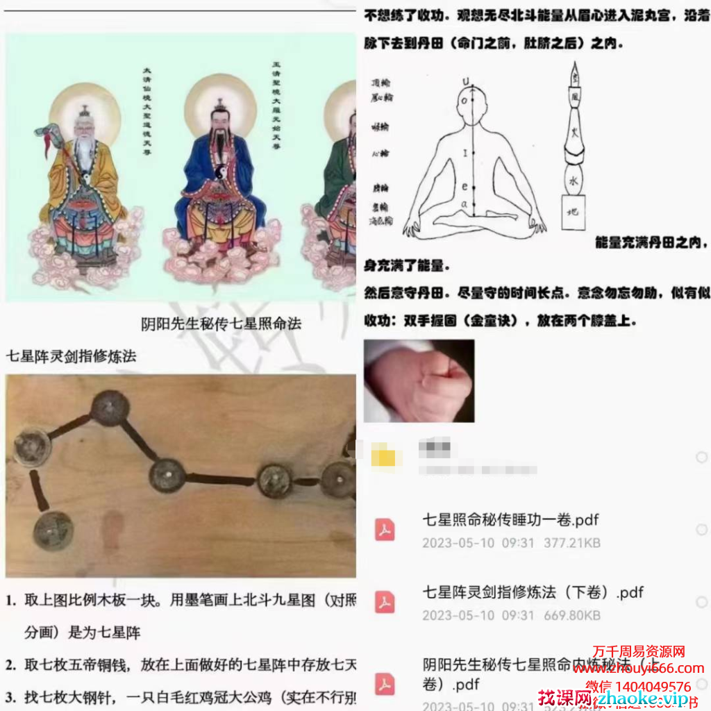 一体二用。内外合一。修成此术。即有北斗照命,护法常随。是为道家练就法身之玄妙方术。1,秘传七星照命内炼秘法(上卷).pdf2,七星阵灵剑指修炼法(下卷).pdf3,七星照命秘传睡功一卷.pdf