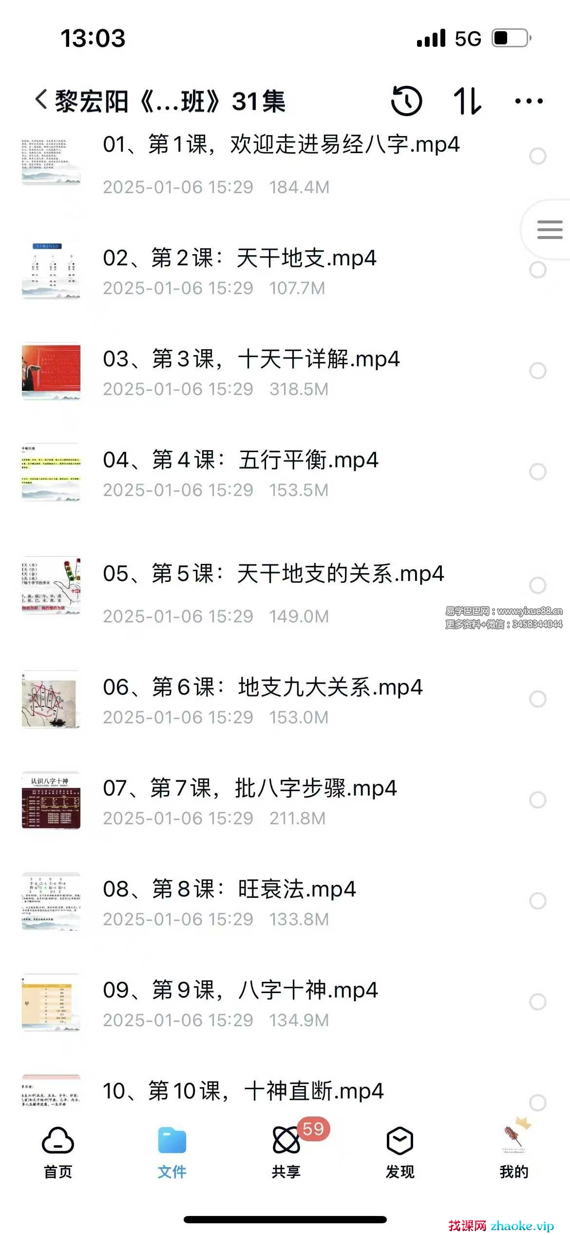 课程编号:Y2504-110黎宏阳《四柱八字高级班》31集【高清无水印】01、第1课,欢迎走进易经八字,mp402、第2课:天干地支,mp403、第3课,十天干详解.mp404、第4课:五行平衡.mp