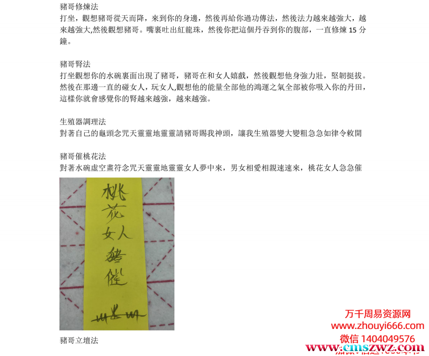 猪哥法是一种传统的民间法,被广泛应用于中国南方及海外华人社群之中。它据传是由宋代道士李自成所创制,起初被列为《金刚经》之一的注释,逐渐演变成一种能祛邪、避灾、保平安的法或符。在现代,猪哥符仍然广受欢迎,被认为是迷和合,招财、开运、催旺财气的神物。目录1猪哥修炼法2猪哥肾法3生Z器调理法4猪哥催桃花5猪哥立坛法6猪哥开光法7猪哥保身法8猪哥鎮坛法9收猪哥法10猪哥开鸿运11猪哥降头12猪哥兵马13猪哥定心法14猪哥合情15猪哥孕育16猪哥迷魂法17猪哥传承法