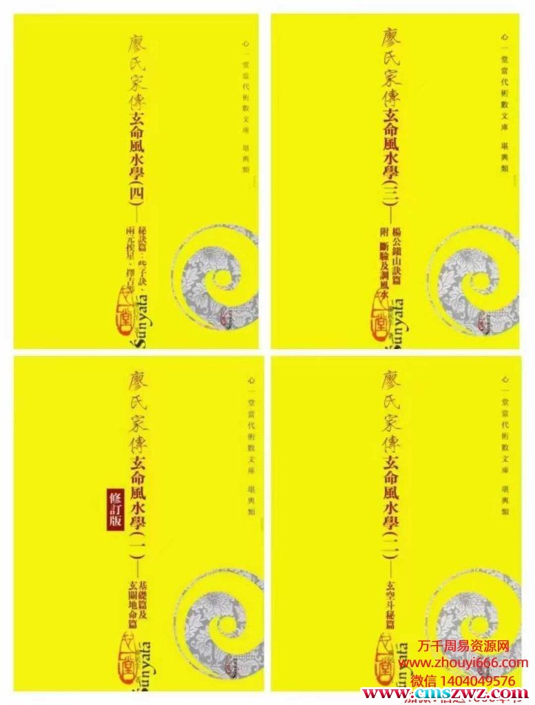 《廖氏家传玄命风水学》4 册一套 秘诀篇 杨公镇山诀 断验及调风水 些子诀 4册页数:218/136/144/218页,实体书,电子书都有内容有:基础篇,玄空斗秘篇,玄关地命篇,秘诀篇,杨公镇山诀,断验及调风水 些子诀,两元挨星,择吉,地命法,地运法,流年爻变法,地眼气法,测外应法,论气线穴法,先后天秘断,六十甲子分金法,三卦之用,大风水的断法,四大水局,财丁和局等。