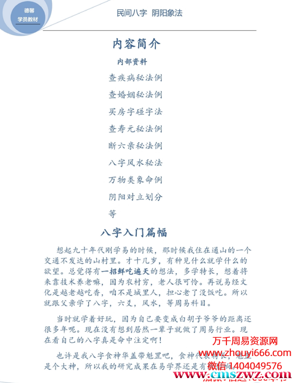 德馨民间八字 阴阳象法《民间弟子班八字学员教本课例》108页.pdf