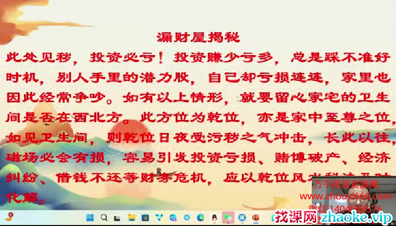 内容大纲1形煞2声煞3味煞4光煞5生活中不能烧的东西6不能选的凶宅7如何净宅8什么情况下需要净宅9厨房门对卧室门10厨房门对厕所门11变压器的化解12高压电塔的化解13门对门的化解14天罗地网煞15哪个位置开门最有利一宅不留两门16震卦的缺角17坤卦的缺角18艮卦的缺角19墙皮脱落与皮肤病20灵龟摆件21有官司的化解22有情水无情水23夫妻和睦的方法24男孩催婚25女孩催婚26断桃花如何布局27缺角怎么补28瑞兽的摆放29何为退气煞(如何化解)30破碎煞31化煞32.生活中倒霉的预兆33.要破财的化解方法34.催旺事业35.催旺桃花法36.左青龙右白虎前朱雀后玄武如何定位37.孩子学业的风水布局38.剪刀煞如何化解39.海螺的化煞作用与运用无名肿毒化解法(祝由)降三高(祝由)改运法(祝由)