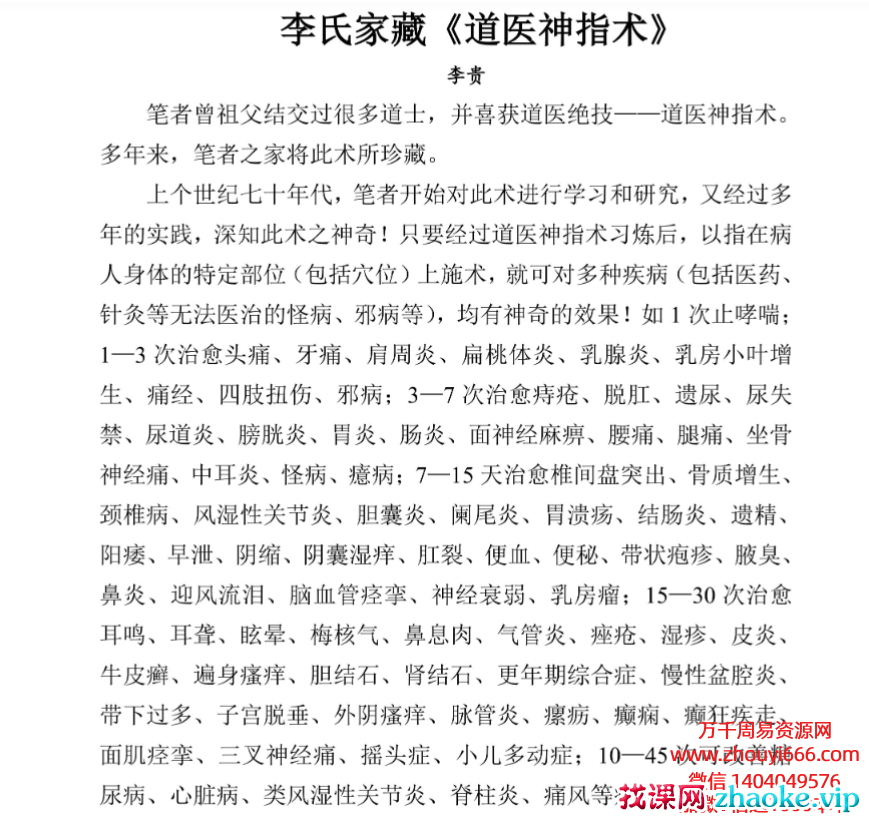 道医绝技一道医神指术。多年来,笔者之家将此术所珍藏。上个世纪七十年代,笔者开始对此术进行学习和研究,又经过多年的实践,深知此术之神奇!只要经过道医神指习炼后,以指在病人身体的特定部位(包括穴位)上施术,就可对多种疾病(包括医药、针灸等无法医治的等),均有神奇的效果!
