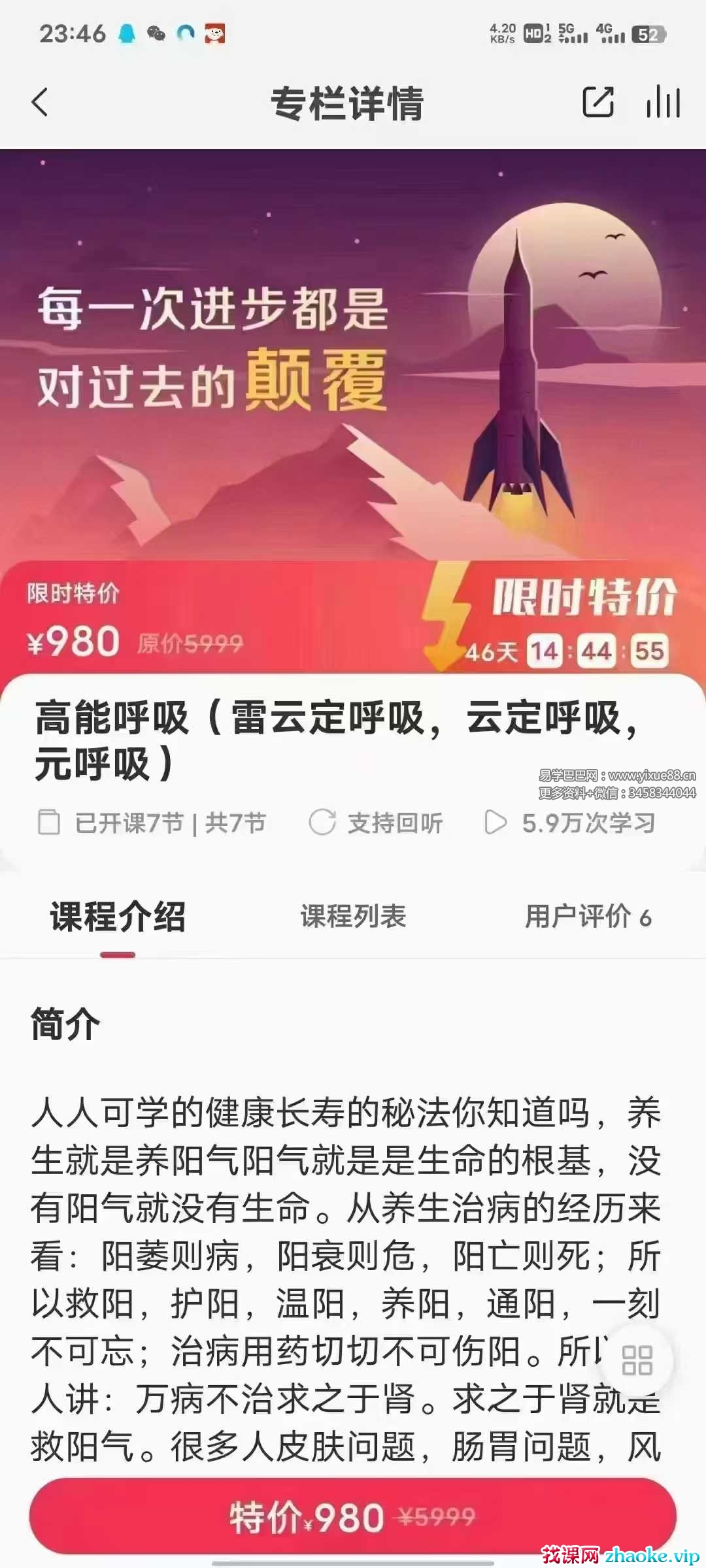 课程编号:Y2506051心愿老师高能呼吸(雷云呼定吸,云呼定吸,元呼吸)共7集视频想用呼吸升生级命多维量能吗?来开启《高能呼吸》通高过能呼吸法,就可以速快帮你提升阳气,清理寒湿气,通经