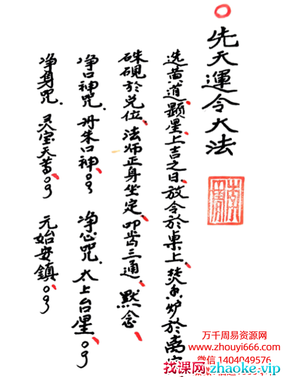主要内容有:先天运令大法,运五雷令大法,天皇令式,五雷令式。公元一九九六年丙子岁八月初八日于桃花源万寿宫,抄写于乾隆十三年之老本。